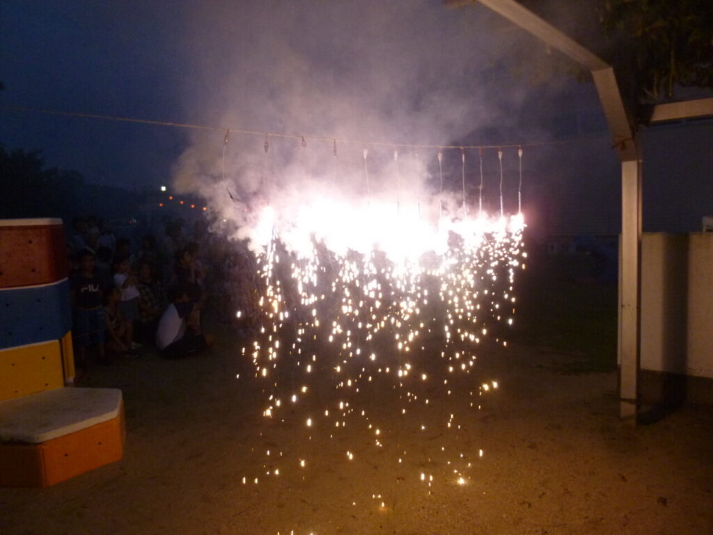 今年の花火大会は、線香花火です。80人限定の線香花火体験となりましたが、火球が最後まで落ちないように工夫して、真剣にしている姿は微笑ましかったです。やぱっり最後はこの花火「ナイアガラ」です。なかなか火がつかない場面もありましたが、最後まで残ってくれた人たちと一緒にこのナイアガラの花火が見れてよかったです。