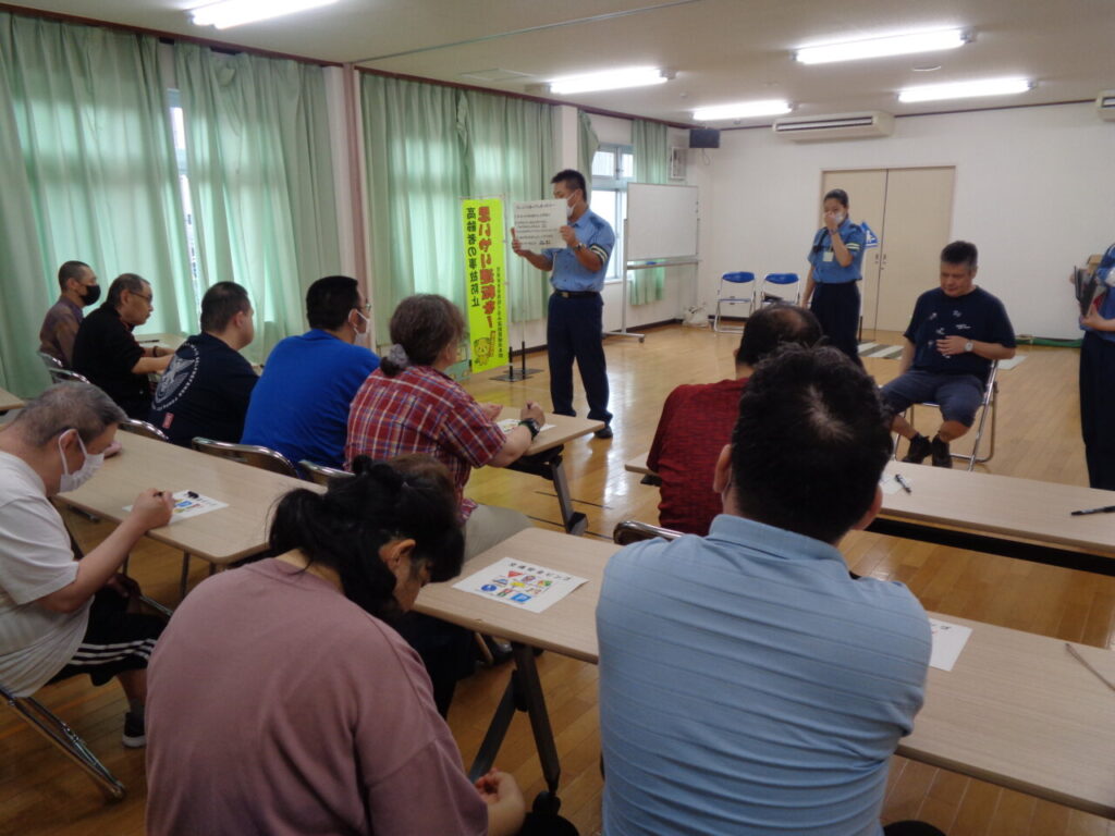 そこで、改めて交通安全に関する意識をもっていただきたいと思い、新居浜市の出前講座で依頼し、新居浜警察署・市の交通課にお越しいただき、いぶきで交通安全教室を行っていただきました。