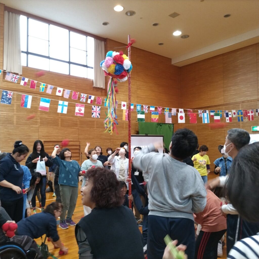 最後の競技、くす玉割り。なかなか割れずに大変でしたが最後はみんなで力を合わせて頑張りました。