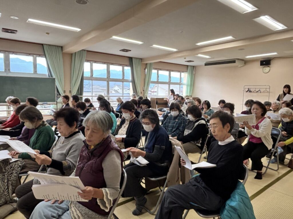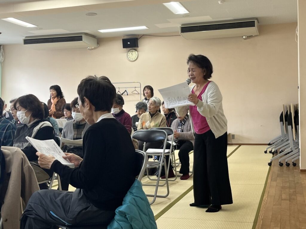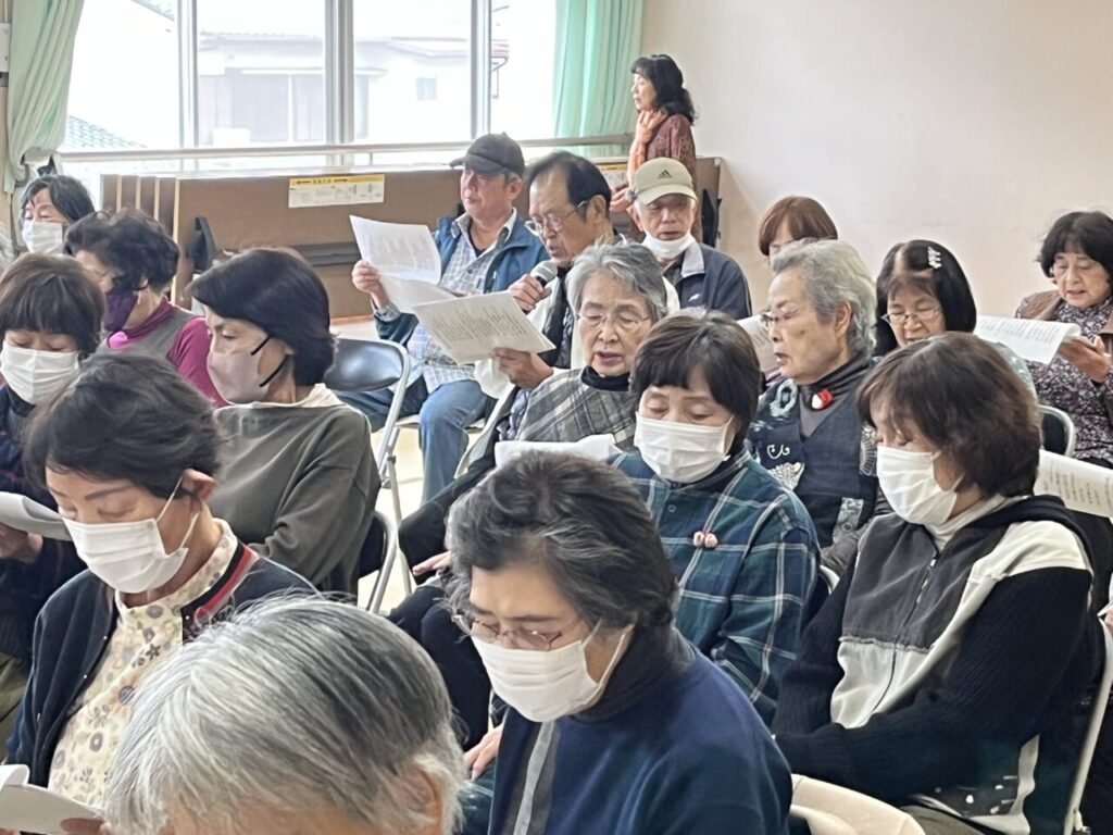 最初の出だしは緊張していたのか声が小さかったのですが、誰かがマイクで歌いだすとつられて皆さんも楽しそうに歌い始め、会場は一気に一体感に包まれました。