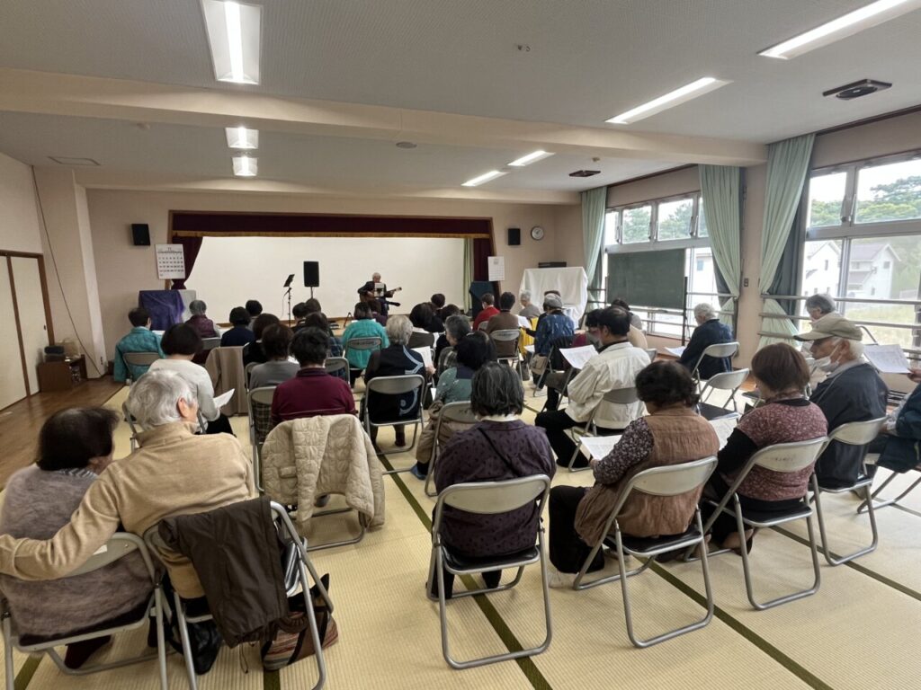 前半はあらかじめ選曲しておいた13曲を、ギターの伴奏でみなさんと歌いました。