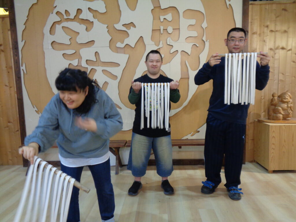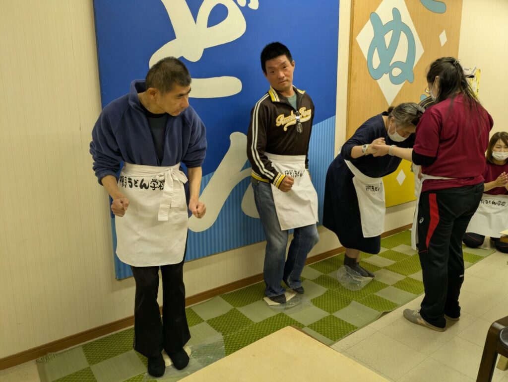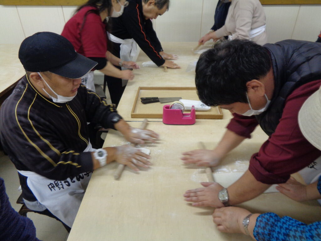 今年度の旅行は、まず高松にある中野うどん学校さんで【うどん作り体験】を行いました。講師から丁寧に教えていただき、皆で協力してうどん作りを行いました。