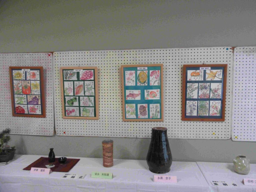 1階では、陶芸 演芸 クラフト 書道 短歌 絵手紙サークル、一般の方の作品展示を行いました。ひとつひとつ思いのこもった愛情いっぱいの作品に心が和みました。また、陶芸サークルによる即売会では、手作りのあたたかい作品をたくさんの方が買い求めていました。