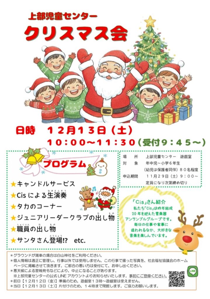 上部児童センター 「クリスマス会」のお知らせ