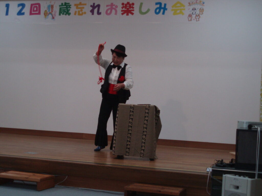 力強い詩吟、深みのある三味線の演奏、優しく明るいオカリナ演奏、会場全体が魔法にかかったかのような雰囲気に包まれた手品、腹話術で登場したサクラちゃんは、長生きの秘訣を教えてくれました。