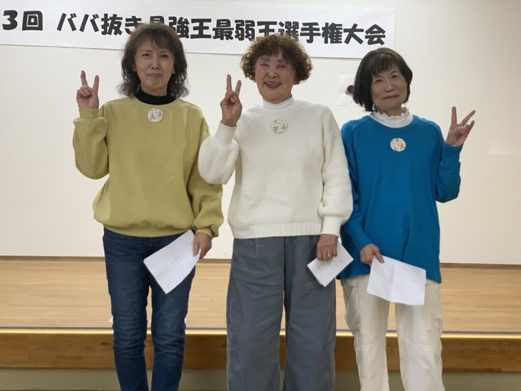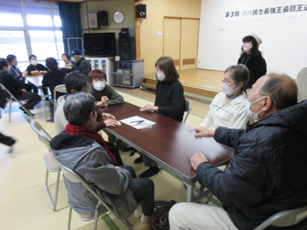 この大会は、最強王・最弱王決定戦まで進むには4回、戦います。2回戦までは全員参加、それ以降は参加賞のおやつを食べながら観戦したり談笑したり、これもこの大会の楽しみのひとつですね。勝ち進んでる(負け進んでる?)方たちは最後まで真剣に戦い続け、最強王・最弱王が決まった時も皆で喜びあっている様子が微笑ましく感じました。