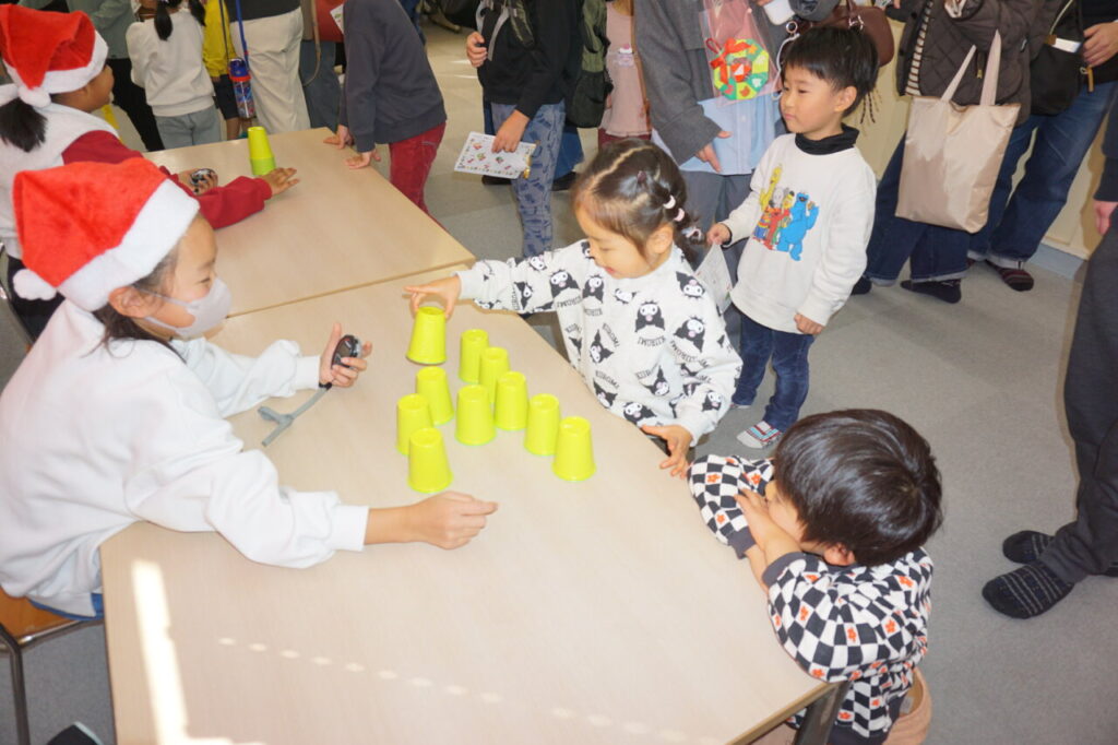 こどもたちは、クリスマスカードを持って各コーナーのゲームを楽しみました🎶