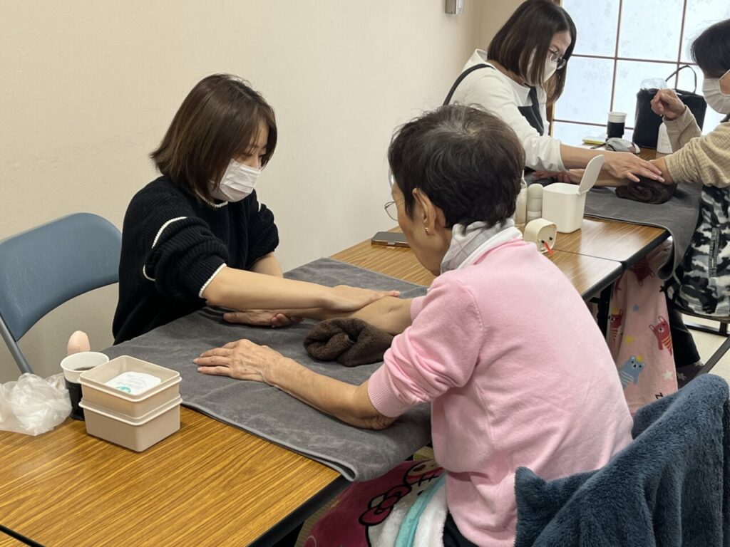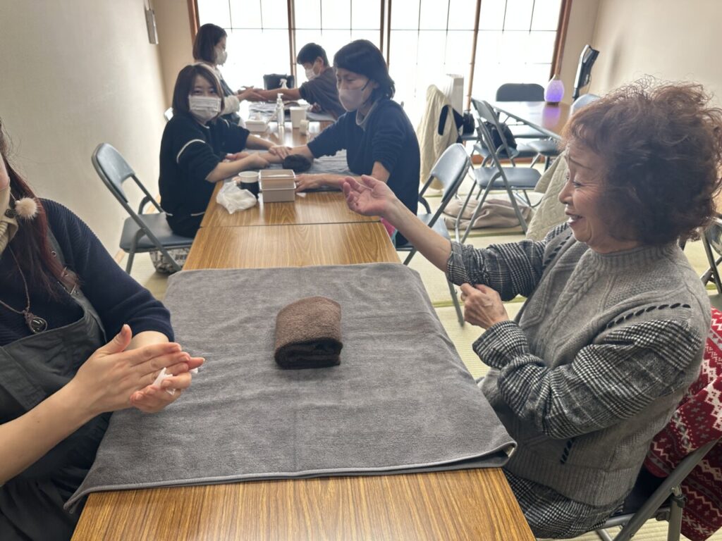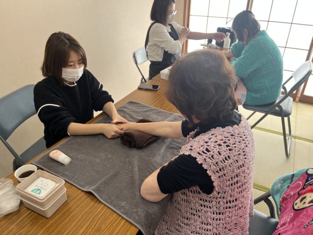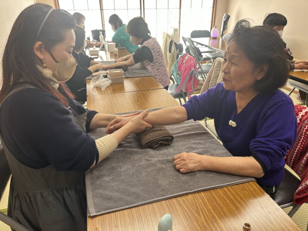 利用者さんにオイルを使ってハンドマッサージを施術していただきました。