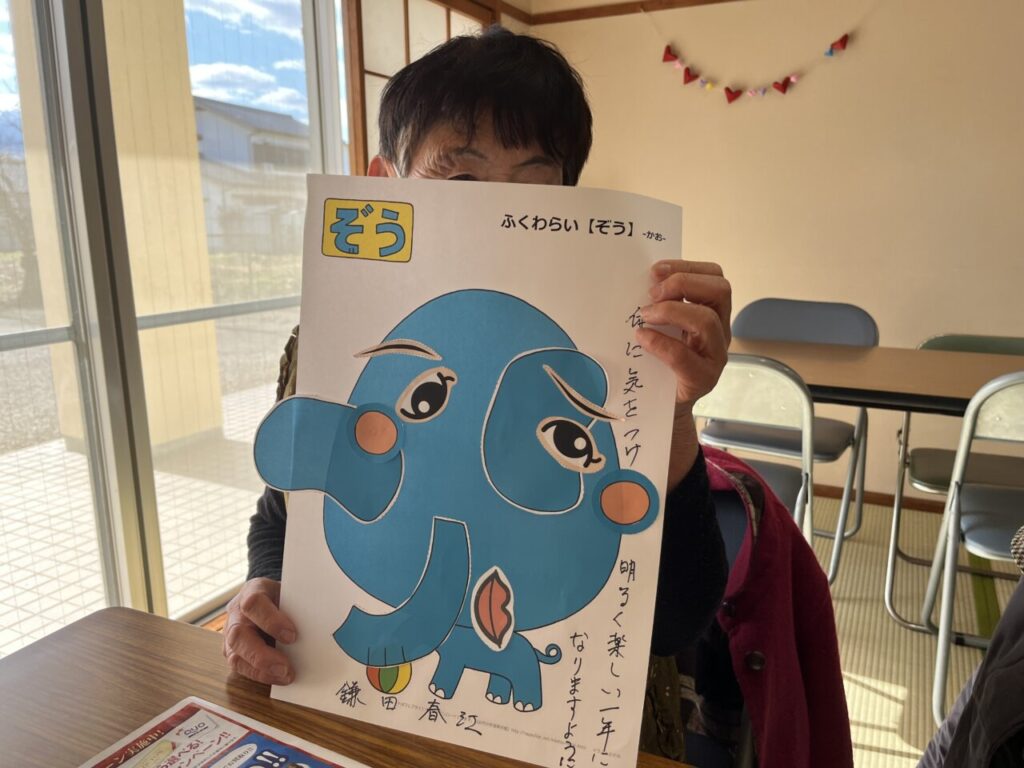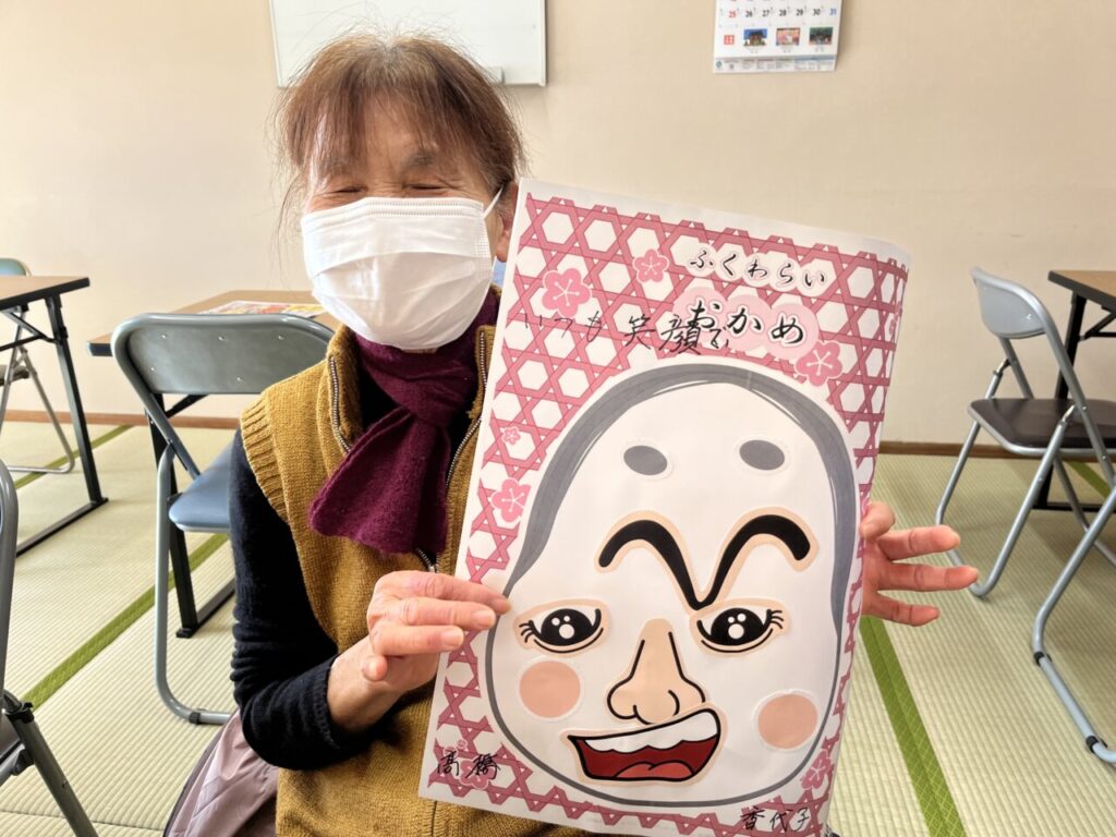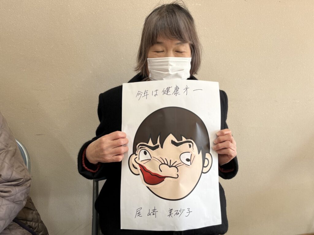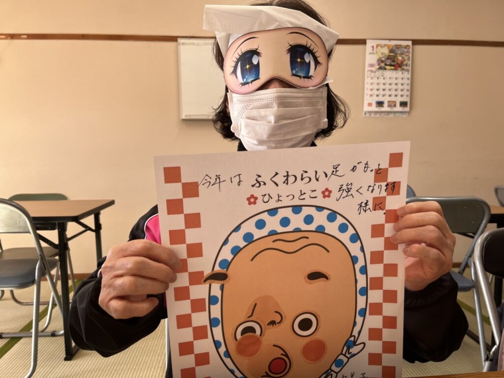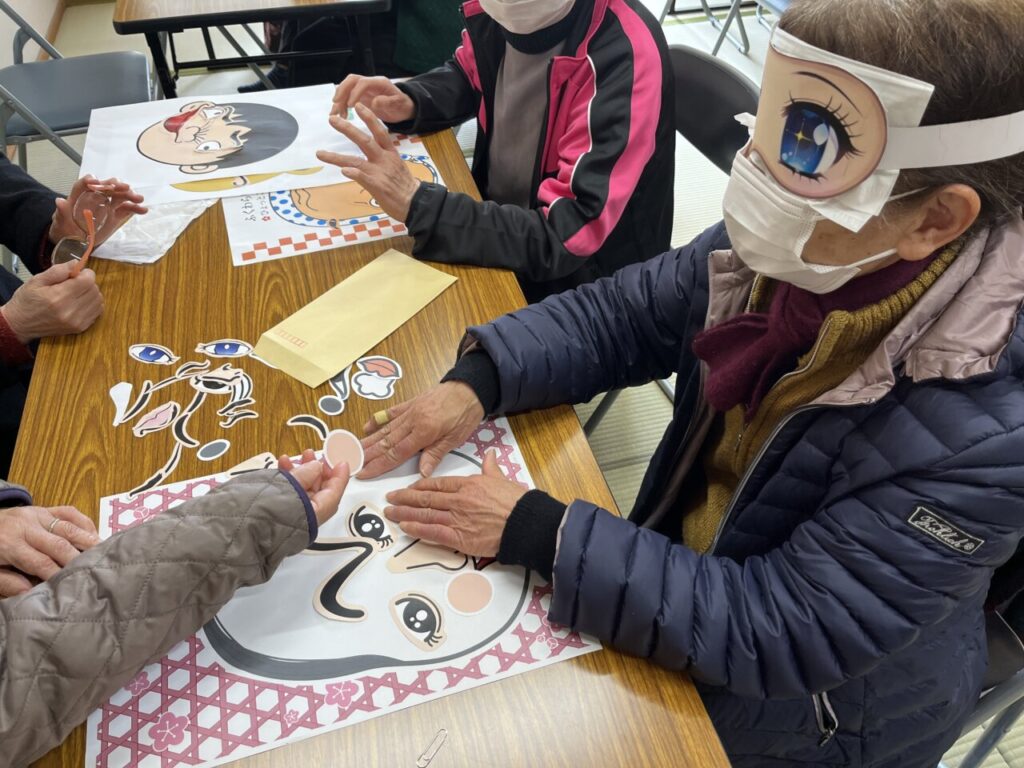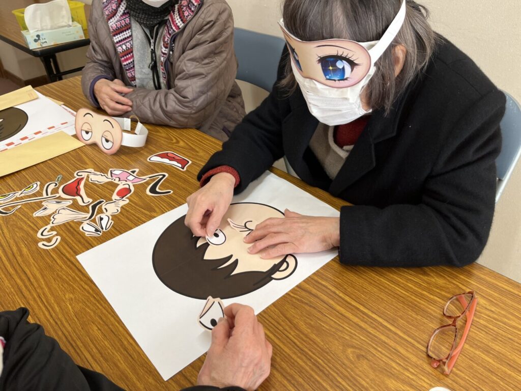 お楽しみ教室始めは、お正月にふさわしく「福笑い」からスタート。