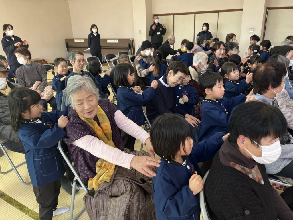 幸せなら手をたたこう👏を歌いながら、小さな手で上手に利用者さんの肩を叩いてくれました😄