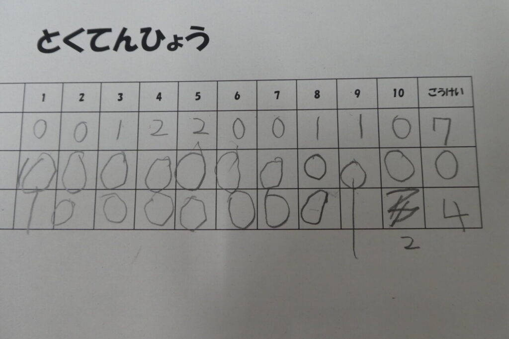 ビー玉を飛ばして何点取れるかな?         得点を付けて、バトルも楽しみました♪