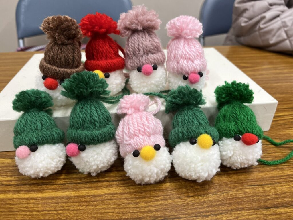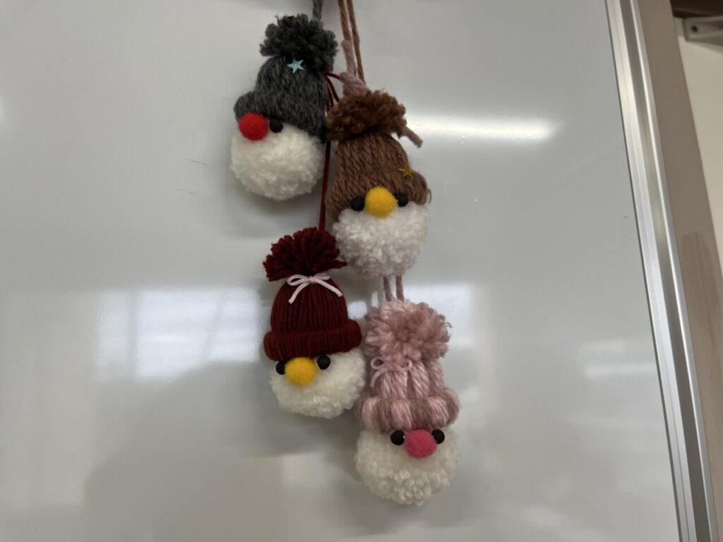ある時は毛糸でトムテ人形を作りました🧶帽子のポンポンをハサミでチョキチョキ✂毛だらけになりながらも可愛いトムテ人形ができました✨