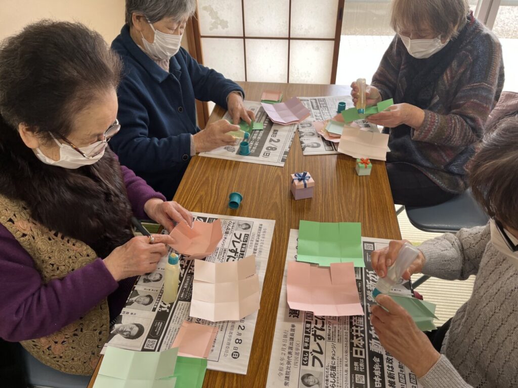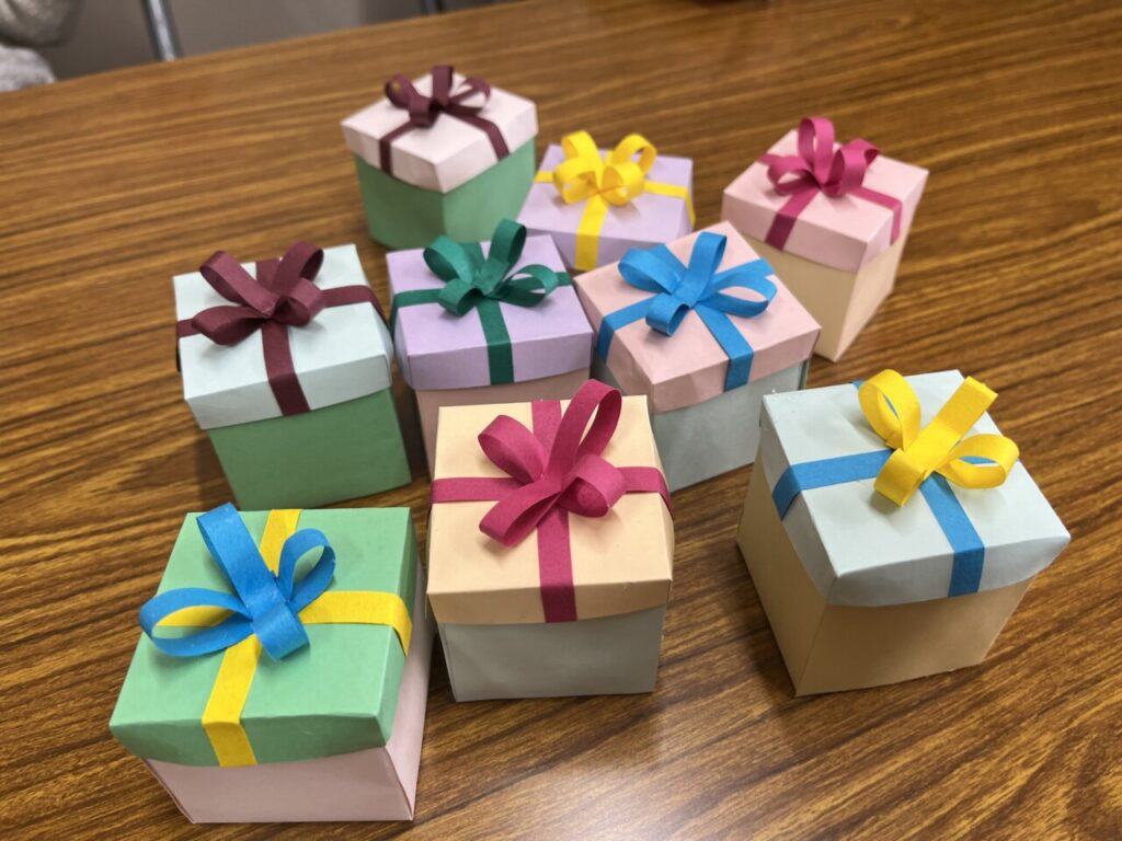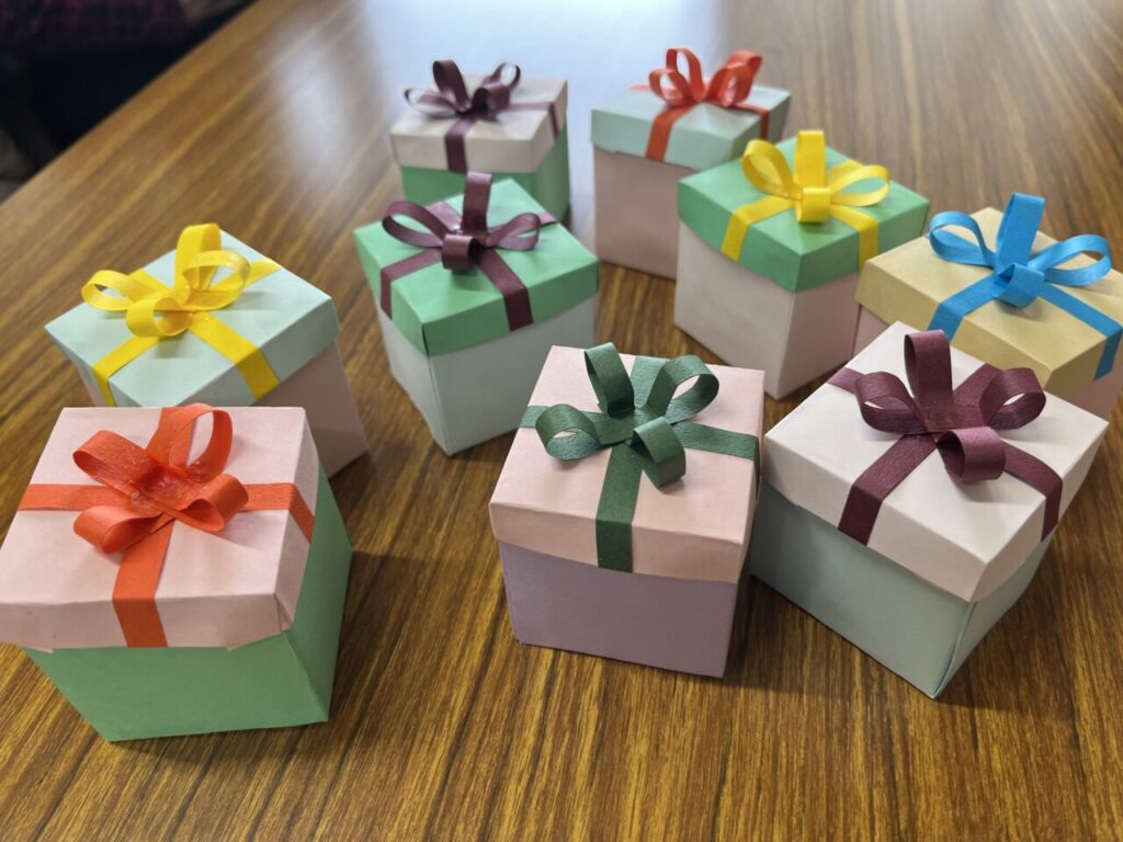 そのあとはもうすぐバレンタインということで、チョコレートを入れる小さな箱を作りました🎁