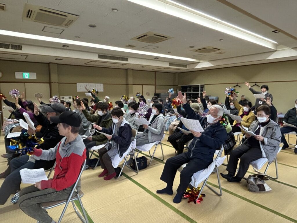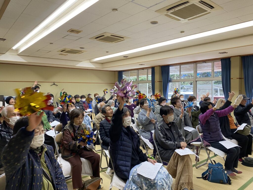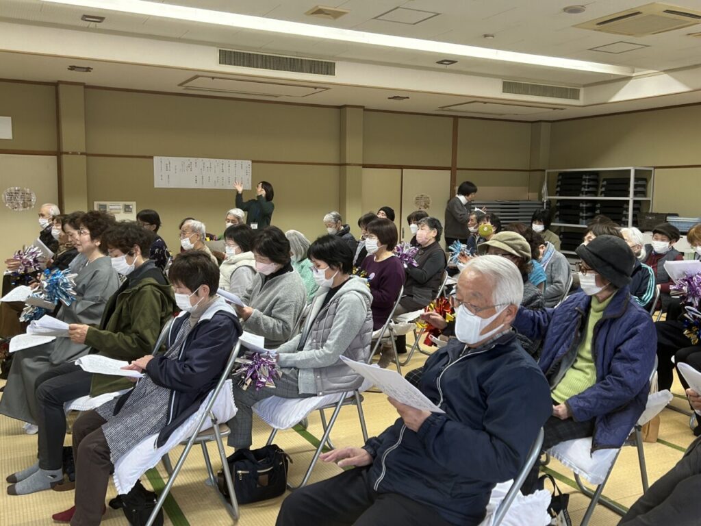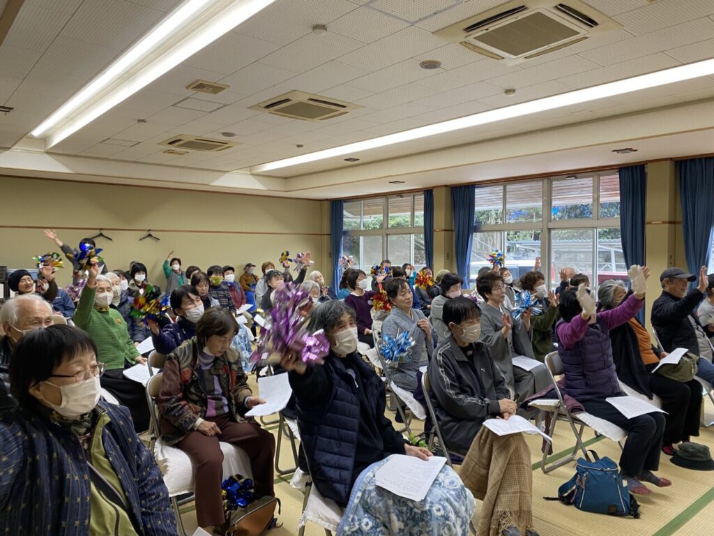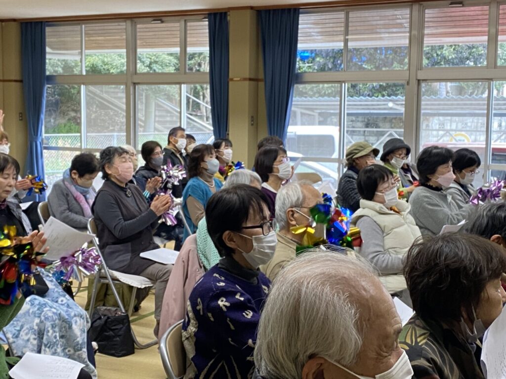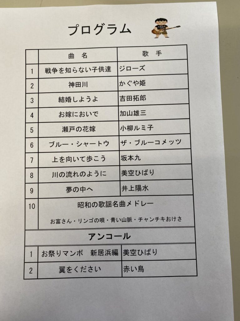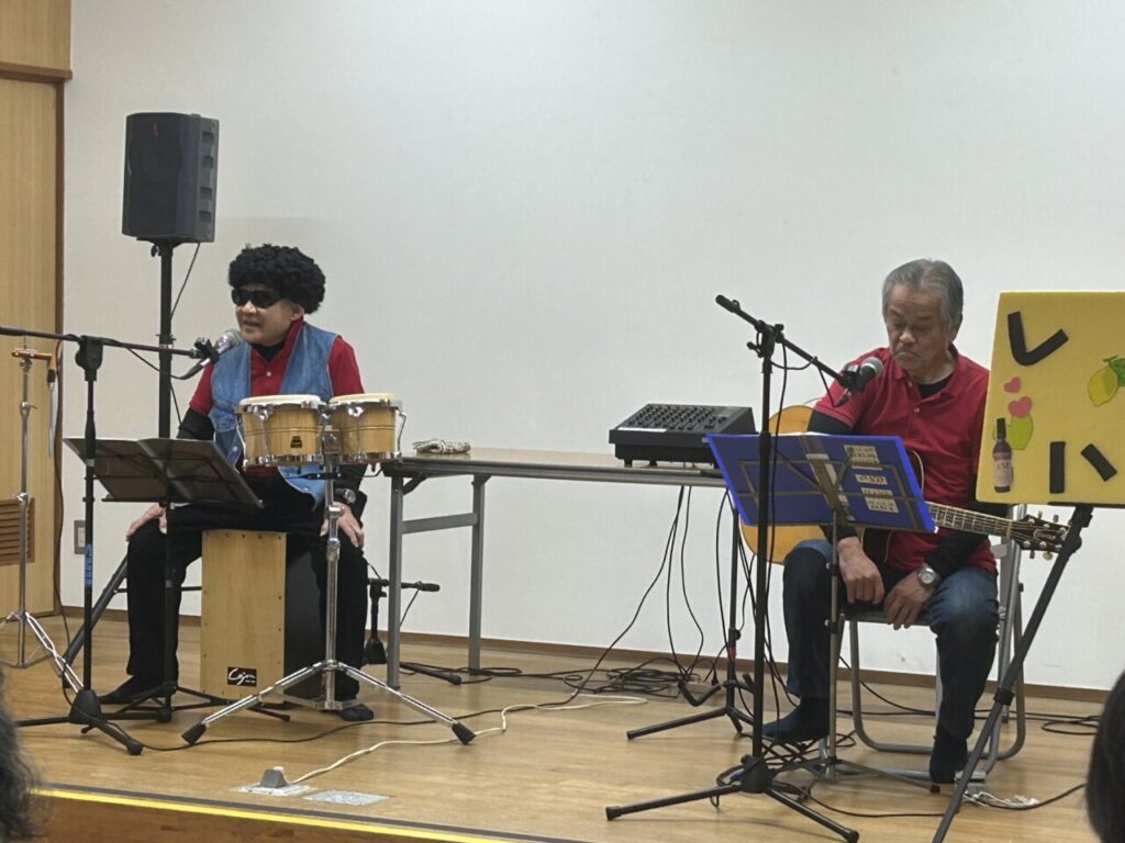 いよいよライブの幕開けです😊ギターとカホンに合わせて、懐かしい歌を一緒に歌います。
