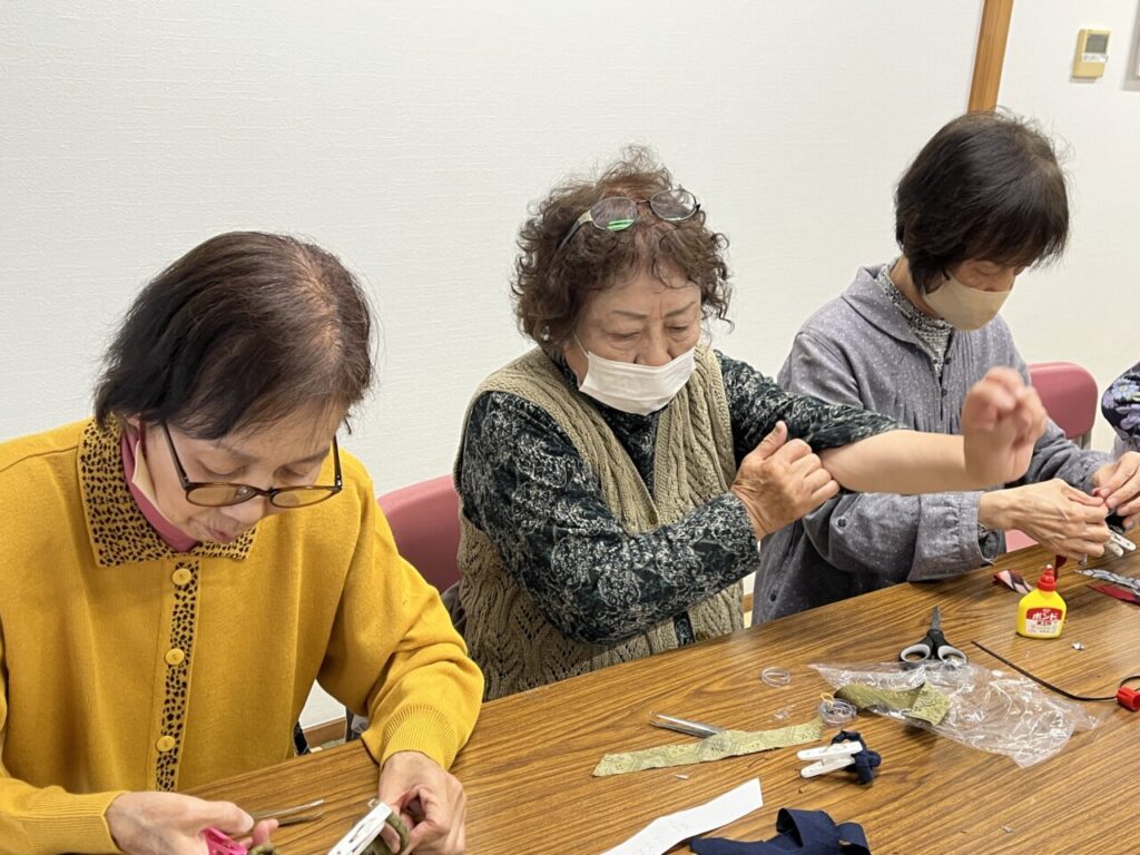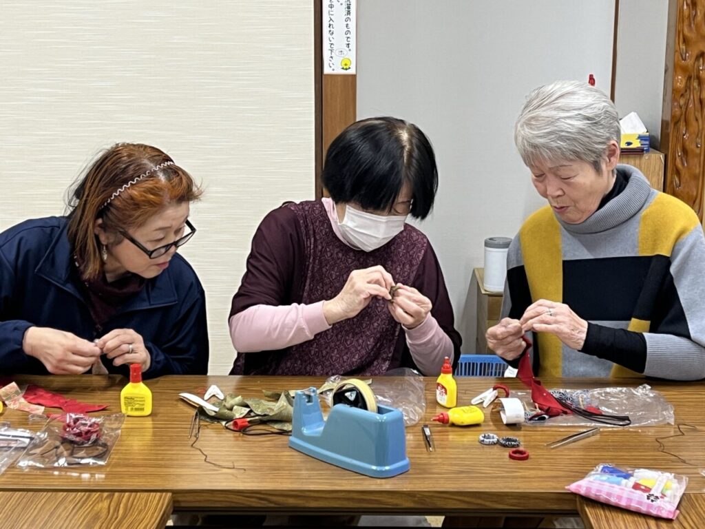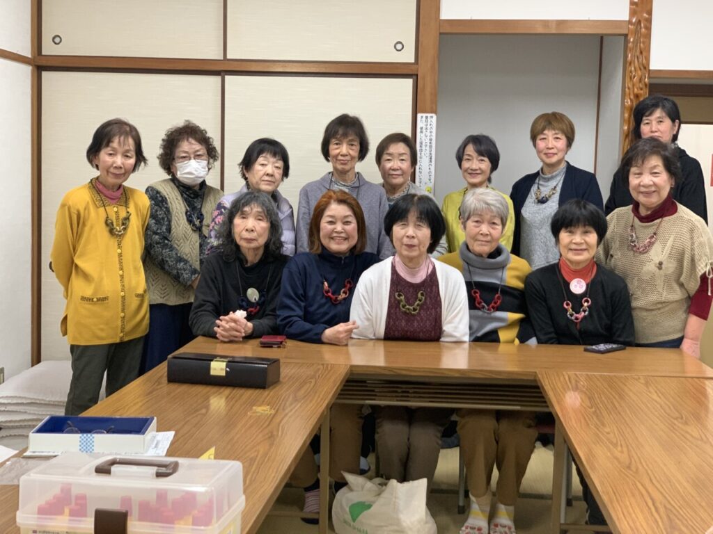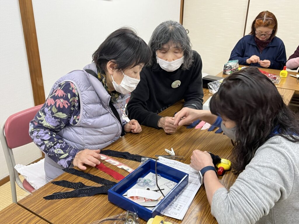 こんにちは。(^^)/シニア交流センター川西です。😄3月25日趣味の教室を開催しました‼️今回は当センター利用者の渡辺鈴代さんに教えていただいた『ハギレでネックレス』を作りました。