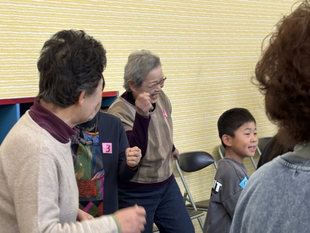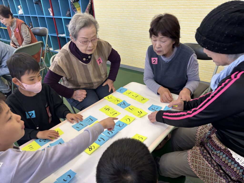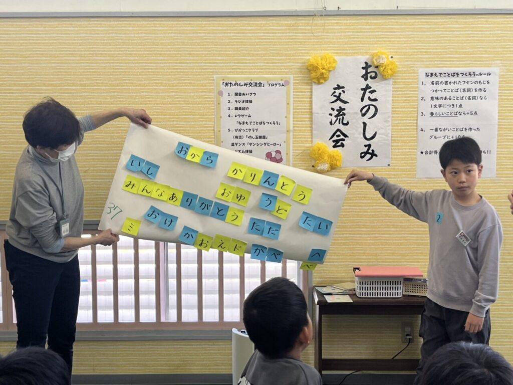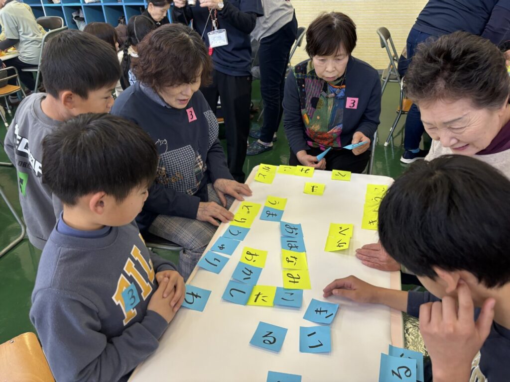 ラジオ体操から始まり、利用者さんと子どもたちの混合チームを作りチームみんなの名前の文字から単語を作るゲームをしました。「ぬた??ぬたって~?」作る単語にも世代のギャップが出て、なかなか面白かったです🤣