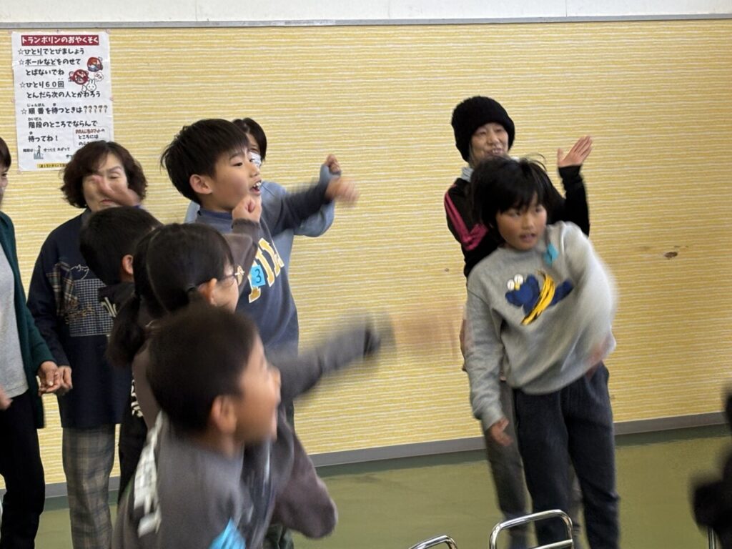 それはそれはノリノリで「ヘイ!ヘイ!ヘイ!ヘイ!」と割れんばかりの声が響きます。盆踊りでも踊るので、少し振り付けは違いますが利用者さんも子どもたちも聞き慣れた曲です😊