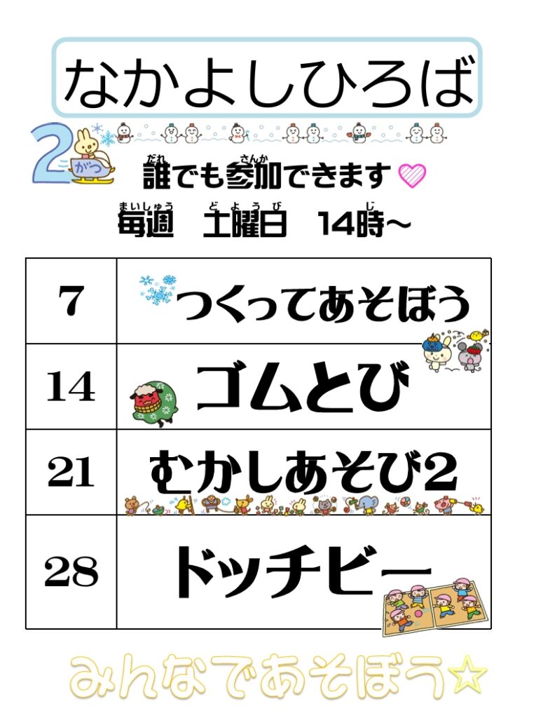 2月の『なかよしひろば』のお知らせです(*^▽^*)