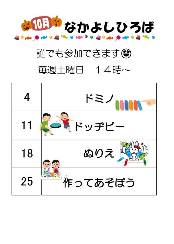 なかよしひろばは毎週土曜日 14時から開催します😊