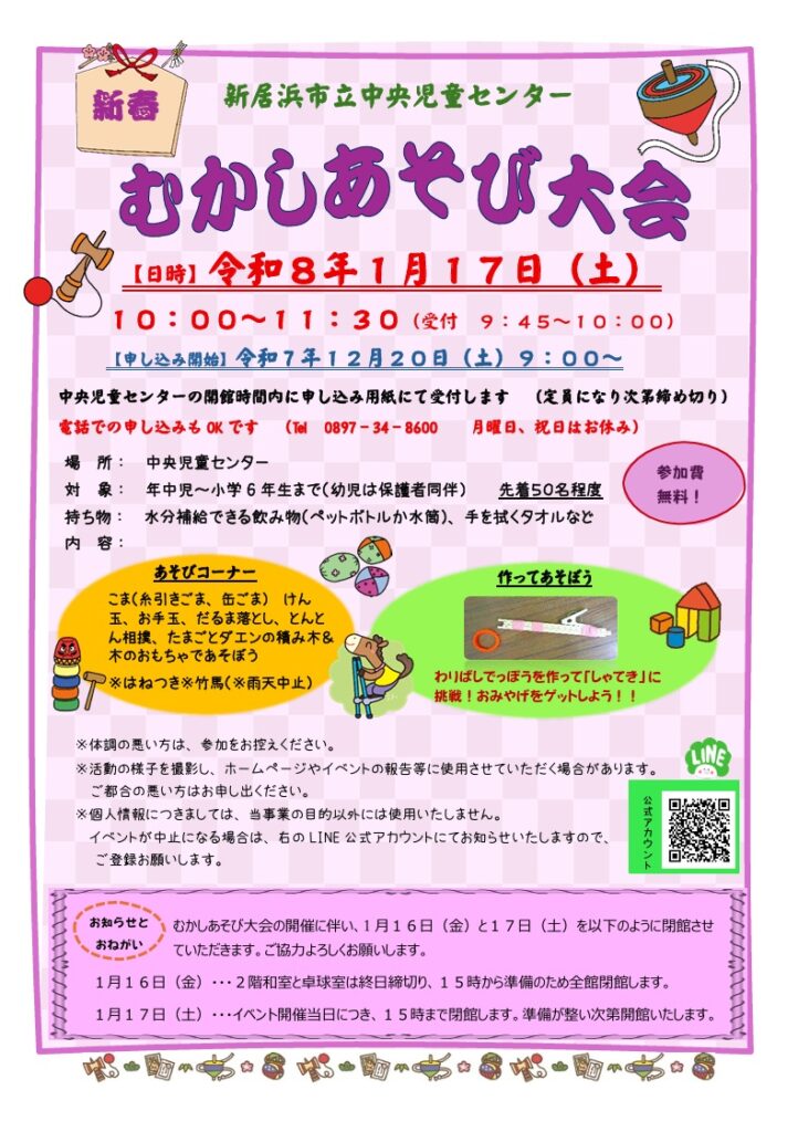 令和8年1月17日(土)に「むかしあそび大会」を行います。