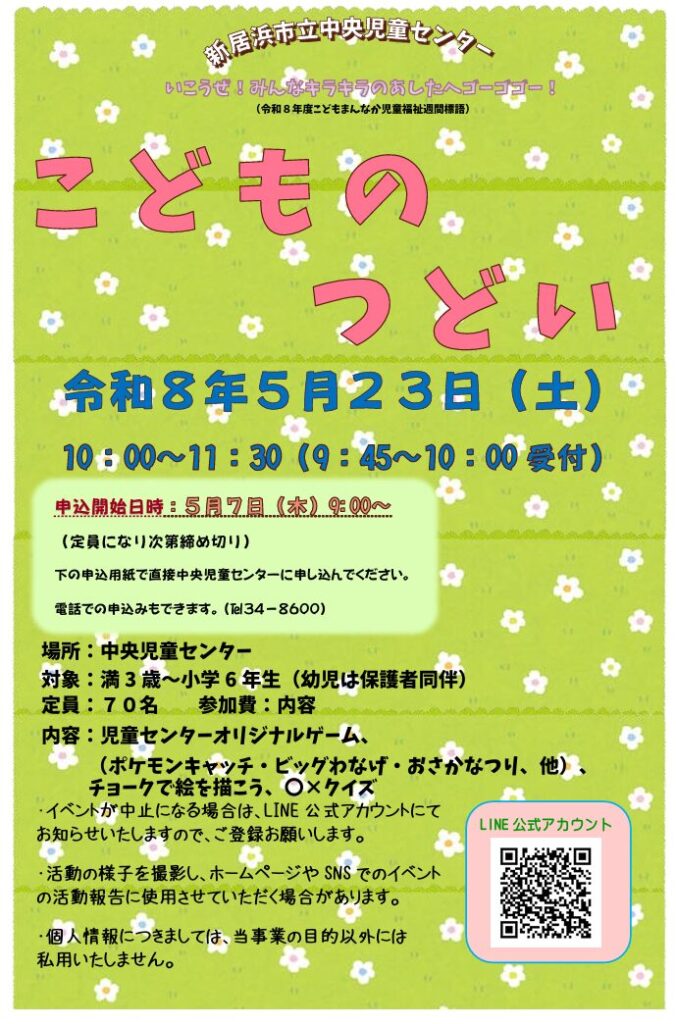 5月23日(土)に『こどものつどい』を行います。