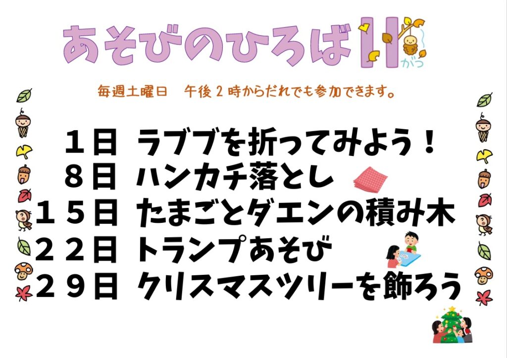 11月の「あそびのひろば」のお知らせです。