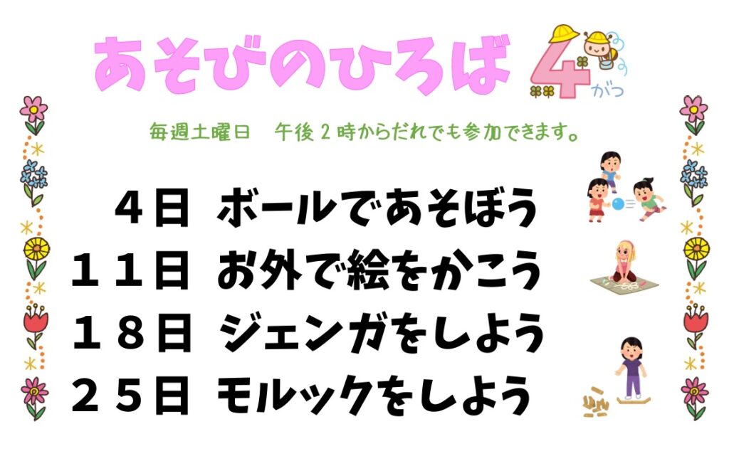 4月の「あそびのひろば」のお知らせです。