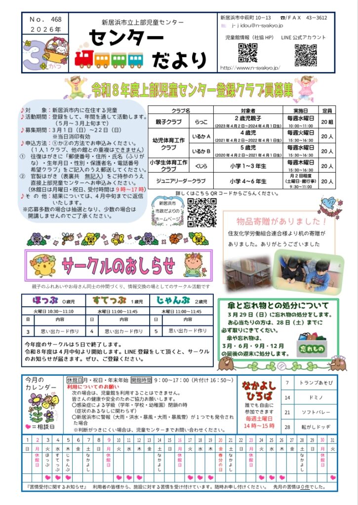 上部児童センター センターだより 3月号
